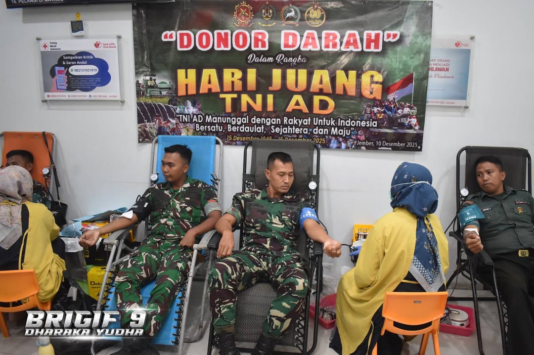 Tunjukan Kepedulian Kepada Sesama, Prajurit Brigif 9/DY/2 Kostrad, Donor Darah Dalam Rangka HUT Radio Republik Indonesia