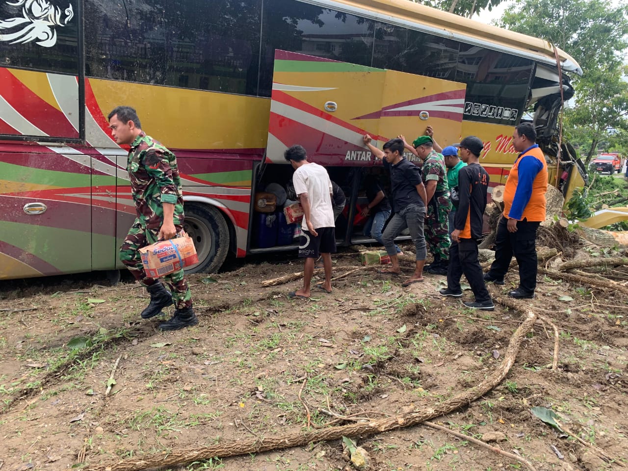 Respons Tanggap Kodim 0913/PPU Bantu Evakuasi Penumpang Bus yang Alami Kecelakaan Tunggal