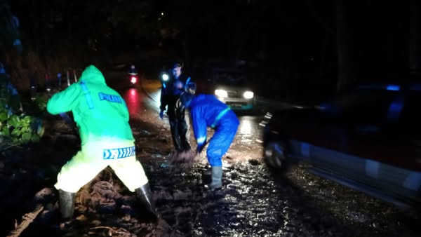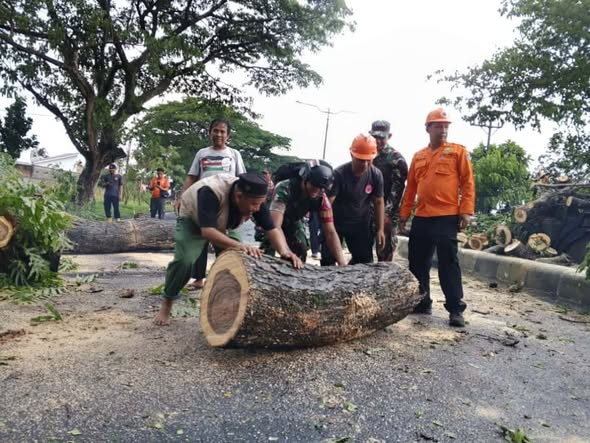 Gerak Cepat, Aparat Gabungan Tangani Pohon Trembesi Tumbang Tutup Badan Jalan Di Area By Pass Jumpai
