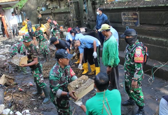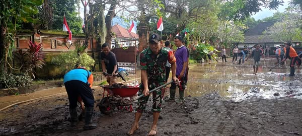 Dandim Klungkung Kerahkan Koramil Dawan Gotong Royong Pasca Banjir Di Dawan Kelod