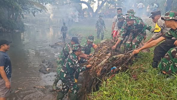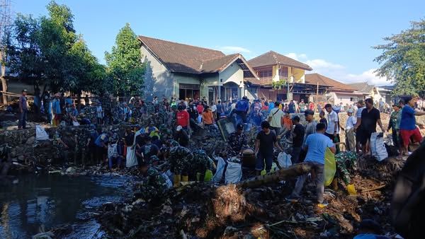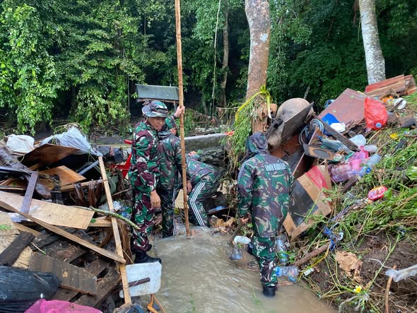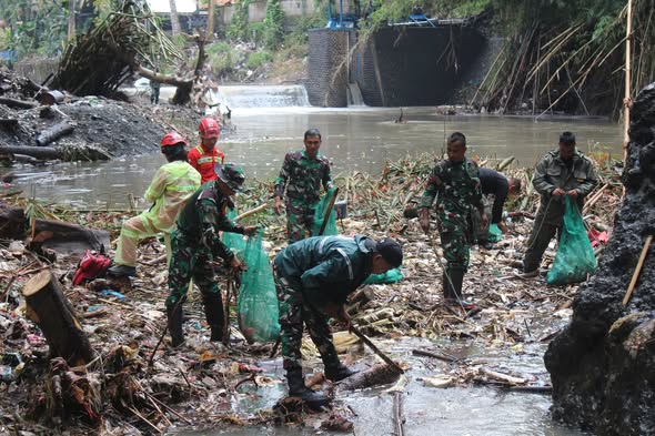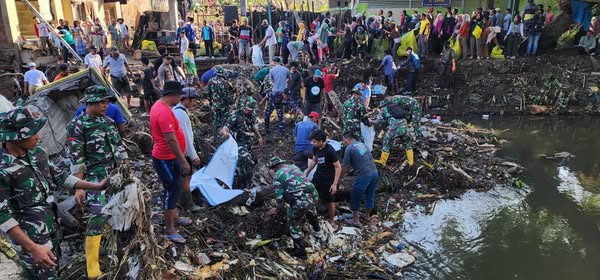 Kolaborasi TNI, Pemda, dan Warga Tangani Sampah Banjir