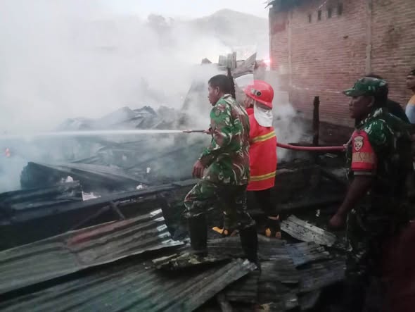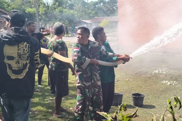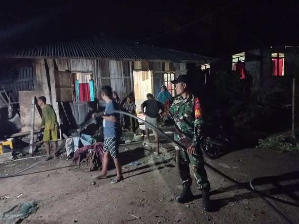 Kebakaran Rumah Warga, Satgas Yonif 741/GN Pos Turiskain Sigap Bantu Padamkan Api