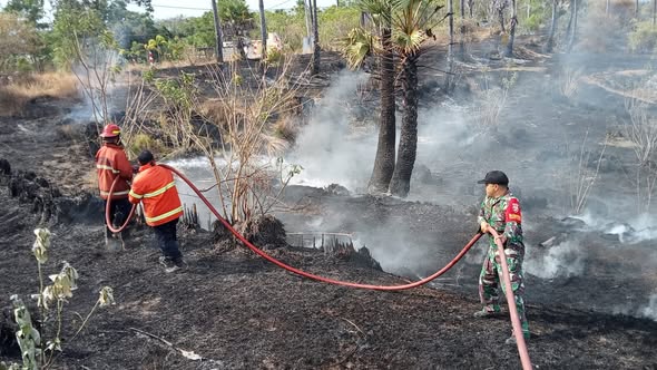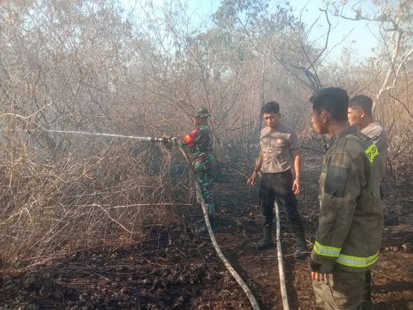 Kolaborasi TNI, Polisi, Damkar Kendalikan Api di Bolok