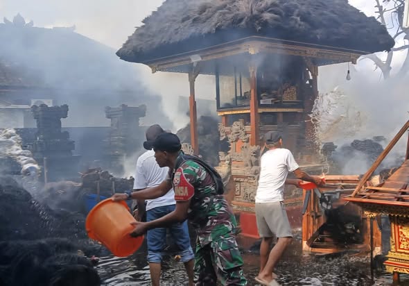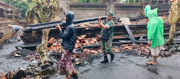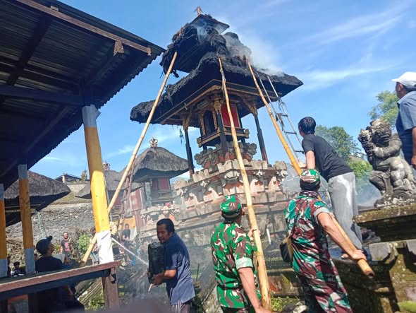 Respon Cepat TNI–Polri dan Damkar Padamkan Kebakaran Pelinggih Pura Puseh Kintamani