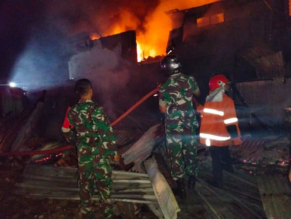 Sinergi TNI Polri Dan Damkar Sukses Tangani Kebakaran Bengkel Sepeda Motor Di Desa Tangkas