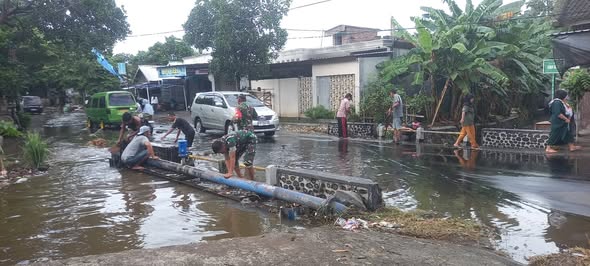 Babinsa Desa Runggu Bersama Masyarakat Gotong Royong Bersihkan Drainase Pasca Banjir