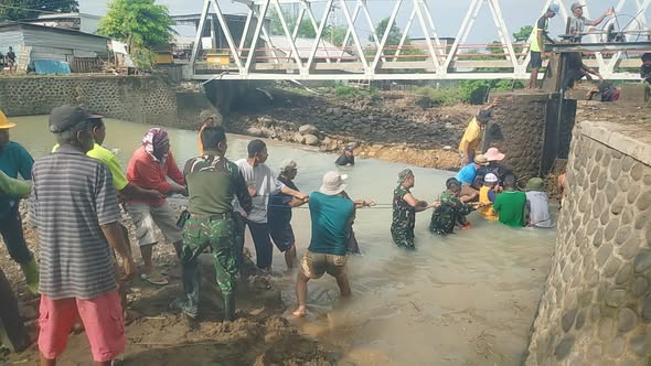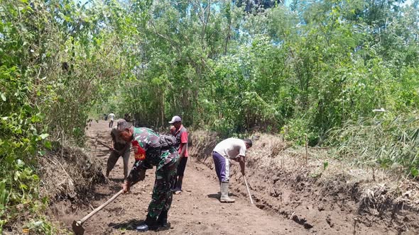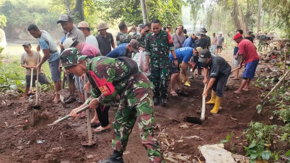 Babinsa Nipa Bersama Kelompok Tani Gotong Royong Bersihkan Irigasi Pascabanjir