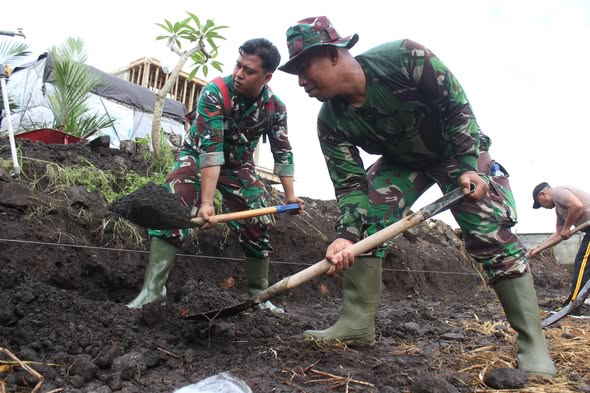 Sinergi TNI-Polri Bersihkan Fasilitas Umum dan Rumah Akibat Erupsi Lewotobi