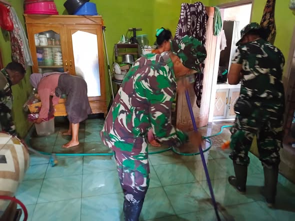 Danramil Hu’u Pimpin Pembersihan Sisa Banjir di Rumah Warga Desa Rasabou dan Cempi Jaya