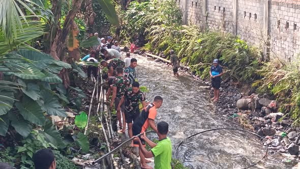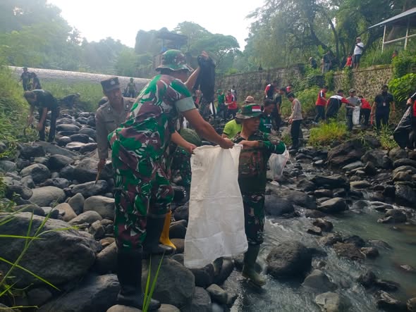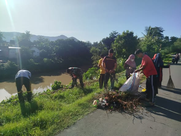 Gotong Royong Koramil 1608-07/Monta Bersama Muspika, Bersihkan Sungai
