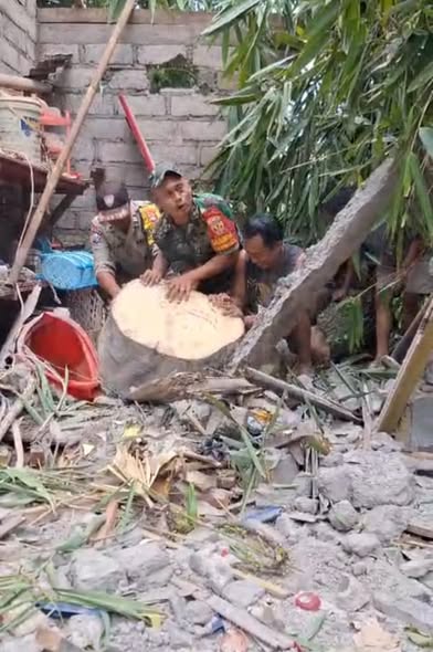 Babinsa Koramil 02/Wanukaka Bantu Warga Desa Praibakul yang Rumahnya Tertimpa Pohon Tumbang