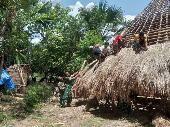 Ringankan Beban Masyarakat, Babinsa Kodim 1621 TTS, Laksanakan Karya Bakti Bangun Rumah Warga Binaan