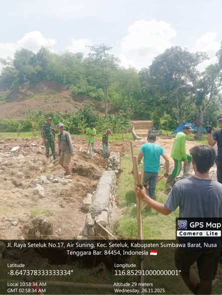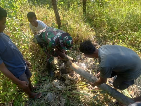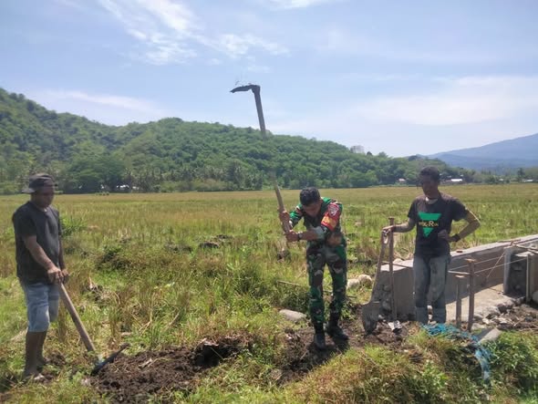 Koramil 1614/Hu’u Bersama Warga Gotong Royong Perbaiki Irigasi Rusak Pascabanjir