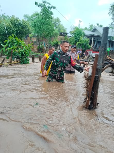 Banjir Landa Kabupaten Bima, Danramil 1608-04/Woha Bergerak Cepat Membantu Warga