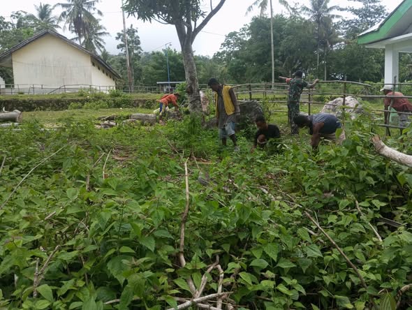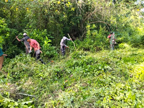Gotong Royong Bersama Babinsa, Pembinaan Teritorial Hidupkan Pustu Tokbesi