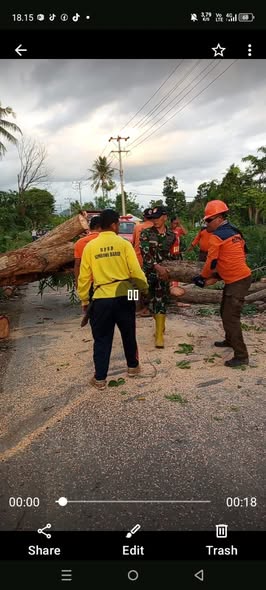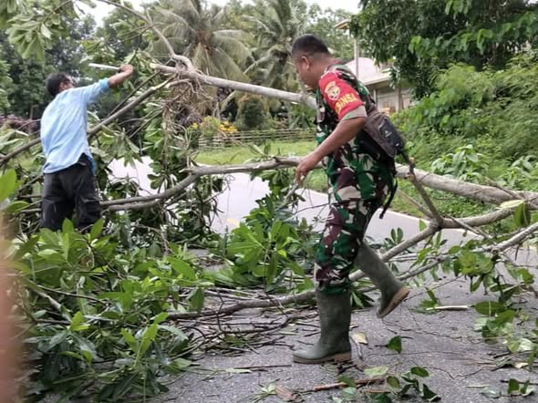 Tanggap, Piket Koramil 1615-08/Labuhan Haji Bersama Masyarakat Evakuasi Pohon Tumbang.