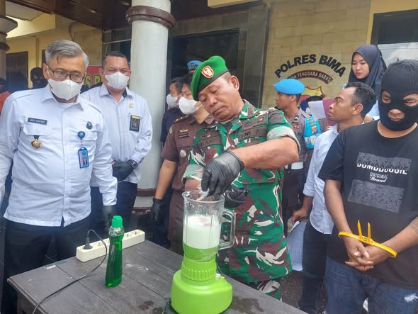 Kodim 1614/ Dompu Hadiri Pemusnahan Barang Bukti di Kejari