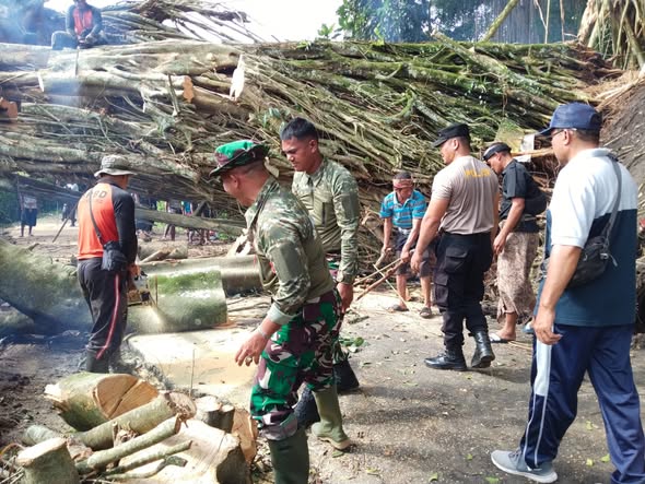Babinsa dan Warga Segara Katon Gotong Royong Bersihkan Pohon Tumbang