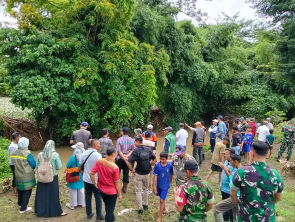 Danramil 1615-04/Keruak Pimpin Pencarian Balita Hanyut di Batu Putik