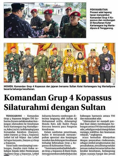Komandan Grup 4 Kopassus silaturahmi dengan Kesultanan Kutai Kartanegara Ing Martadipura