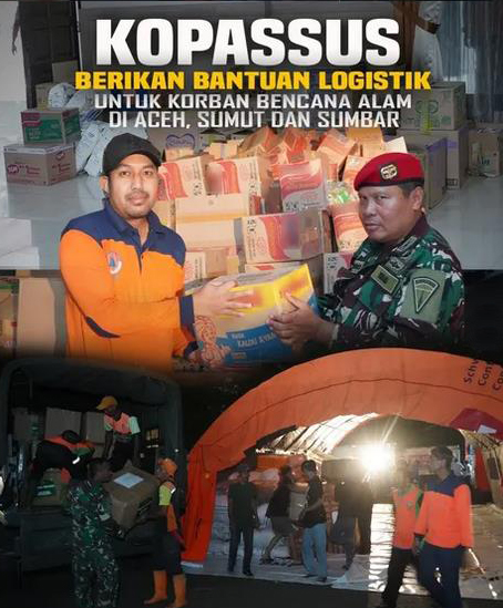Kopassus Salurkan Bantuan Logistik Kemanusiaan untuk Korban Bencana di Wilayah Sumatera