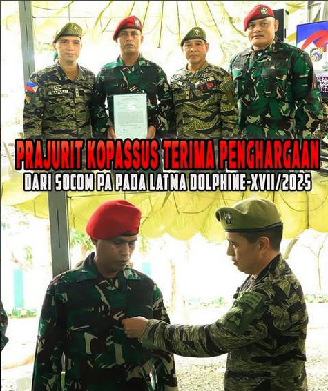 Prajurit Kopassus Terima Penghargaan dari SOCOM PA pada Latma Dolphine-XVII/2025