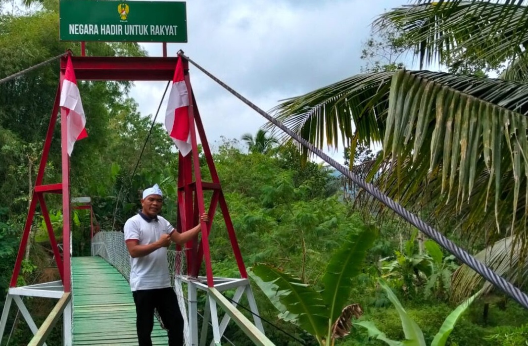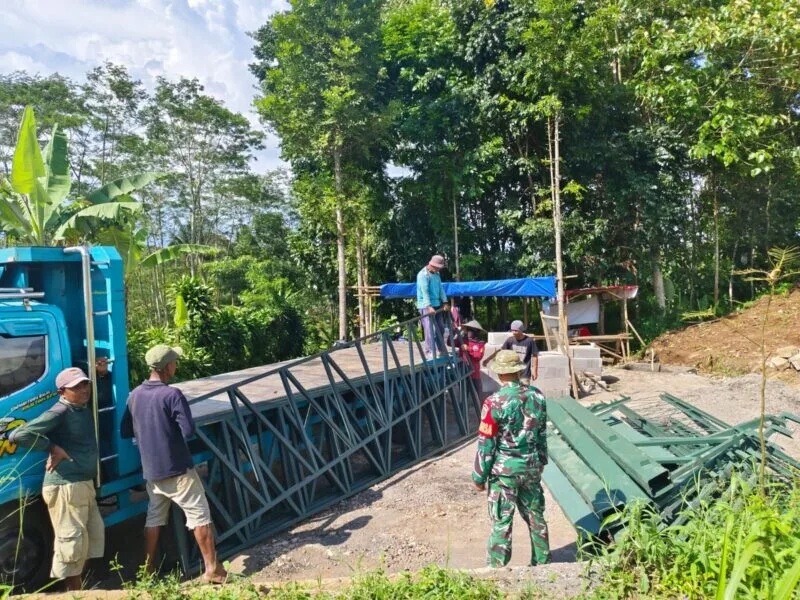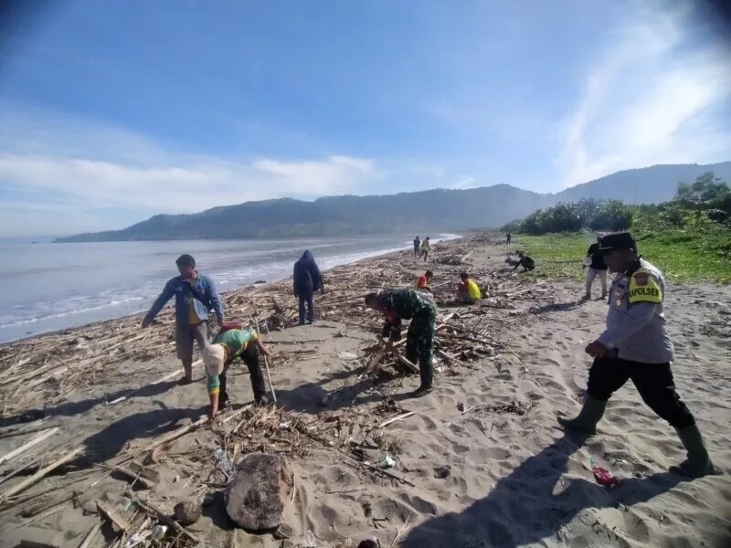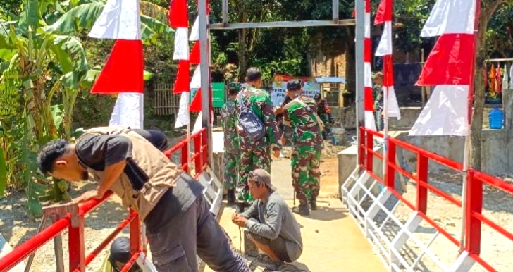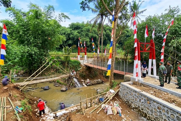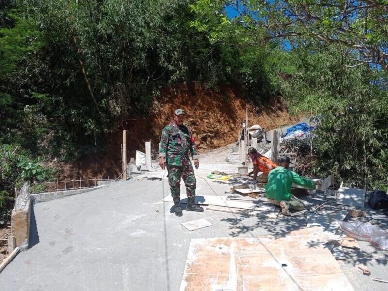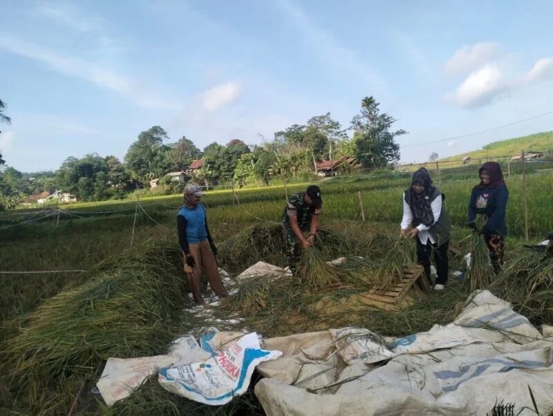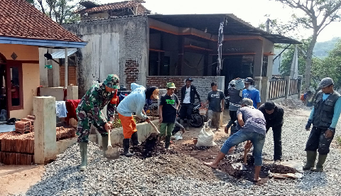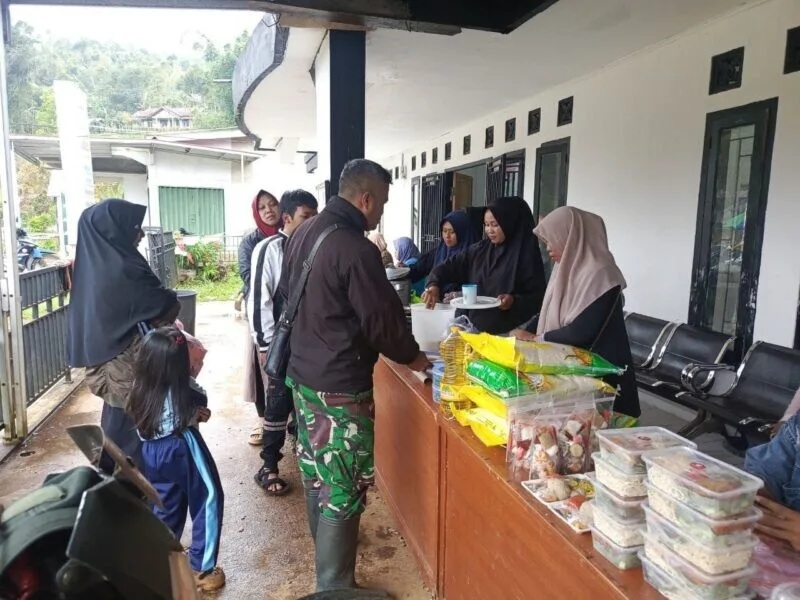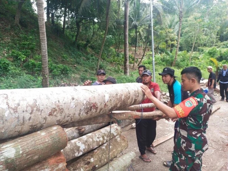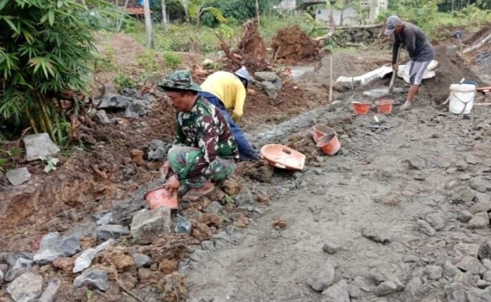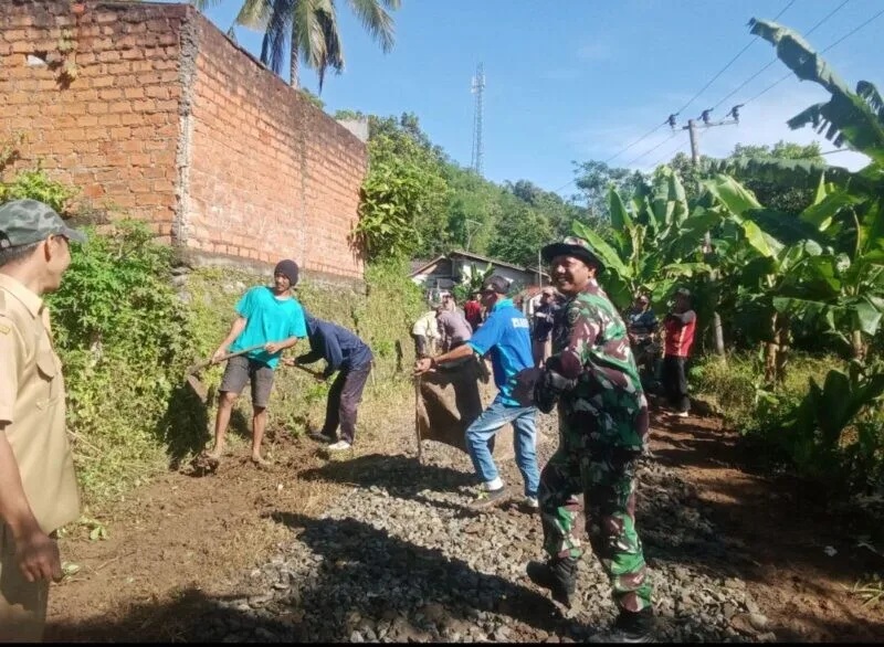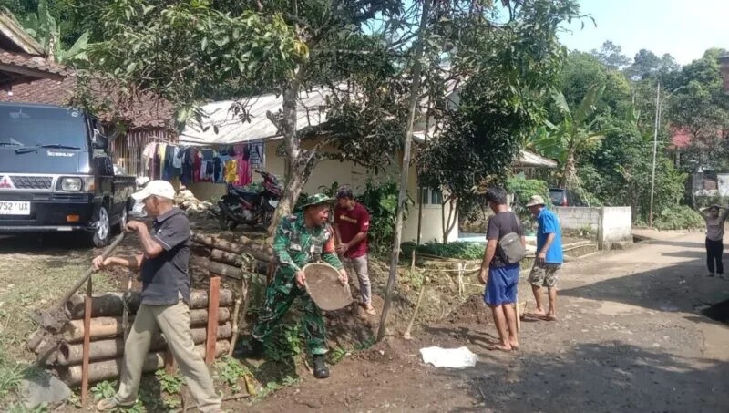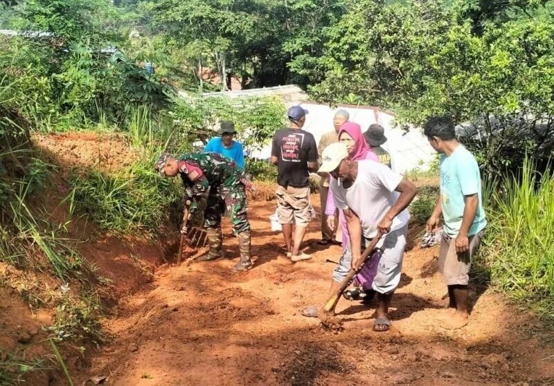 Babinsa Desa Cirendang Koptu Parulian Sihotang Anggota Koaramil 2201/Cisolok Bersama Warga Gotong Royong Bersihkan Material Longsor Di Kampung Ciseer, Cisolok