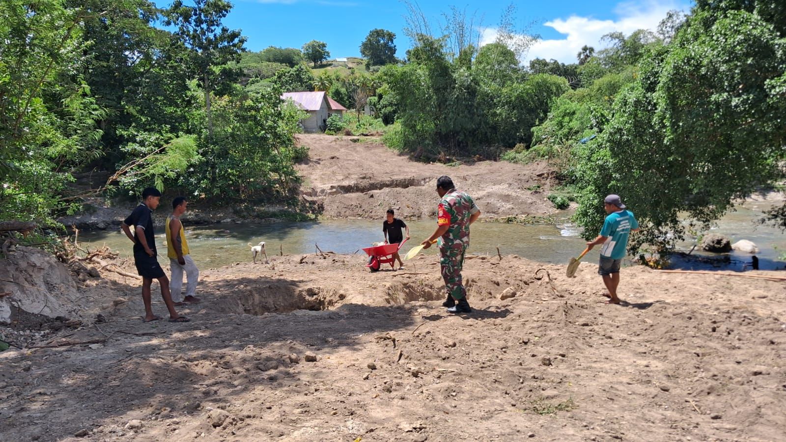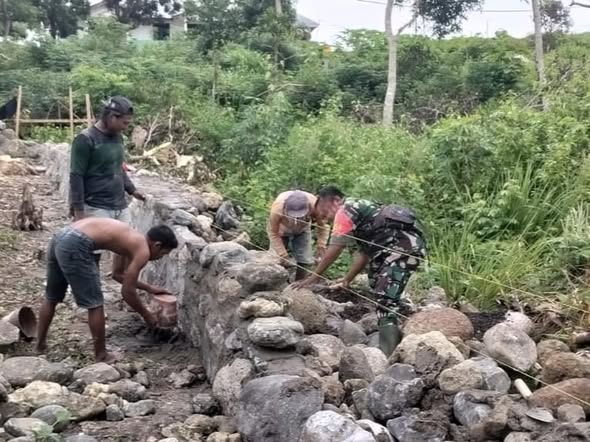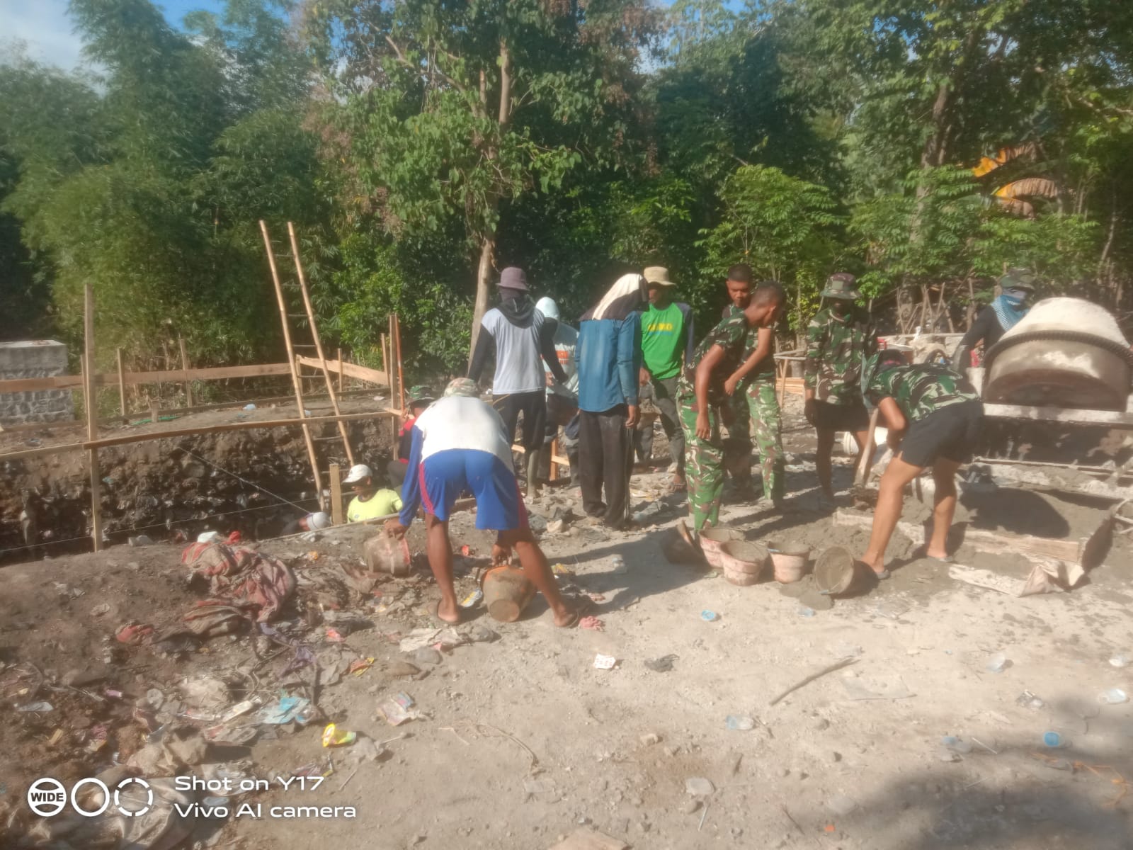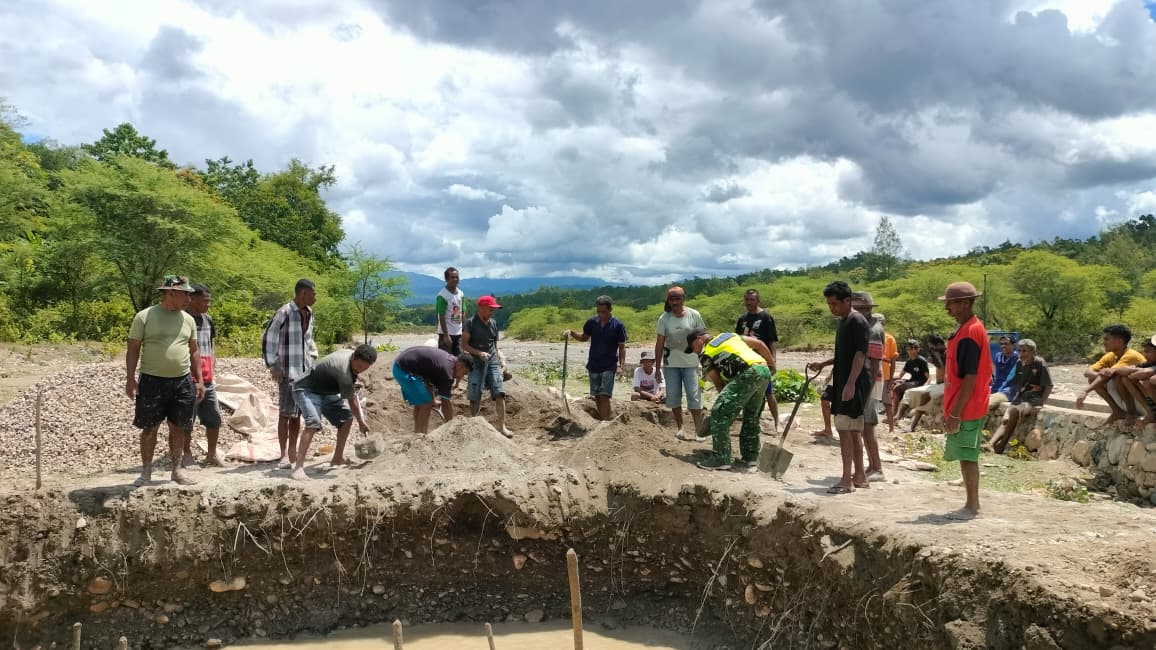 TNI dan Warga Gotong Royong, Pondasi Jembatan Garuda Mulai Dibangun di Dompu