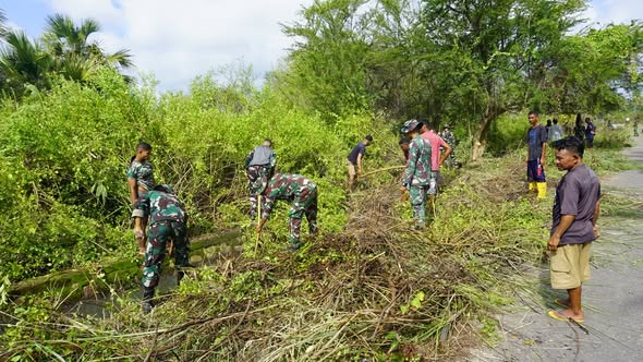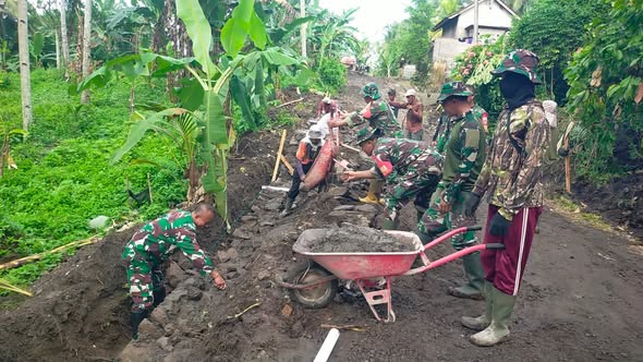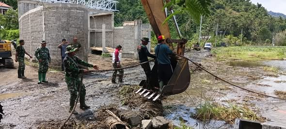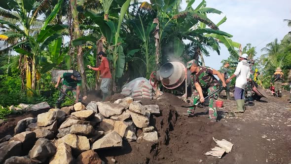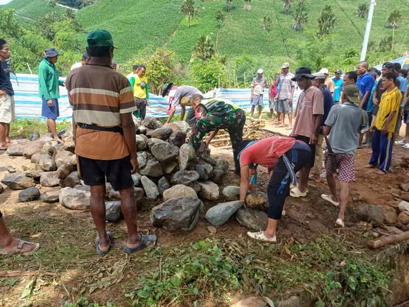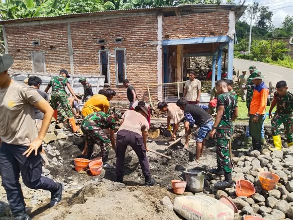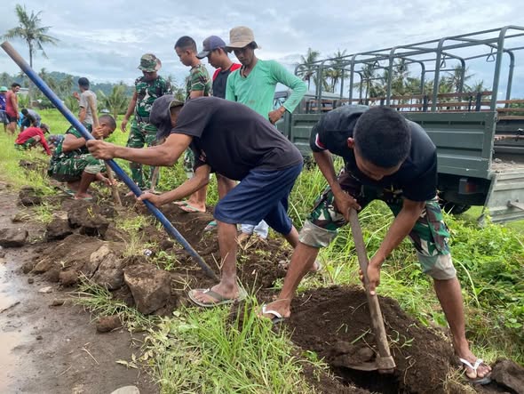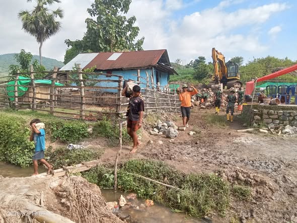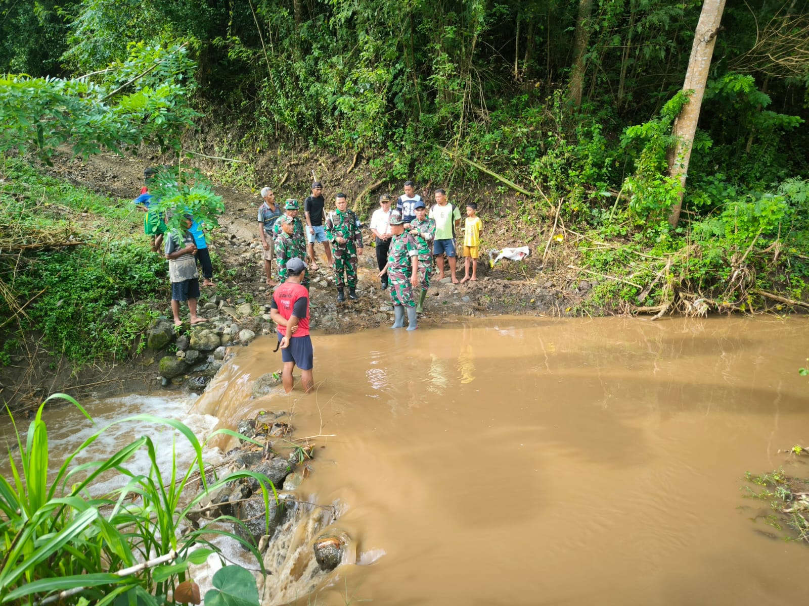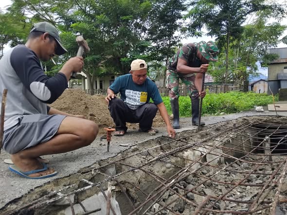 TNI dan Warga Gotong Royong, Pondasi Jembatan Garuda Mulai Dibangun di Dompu