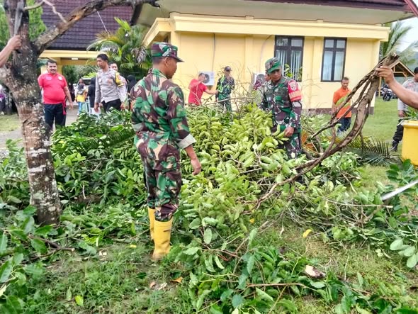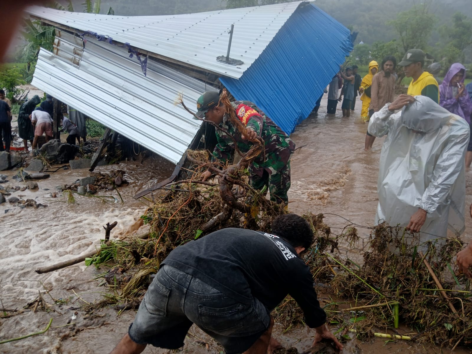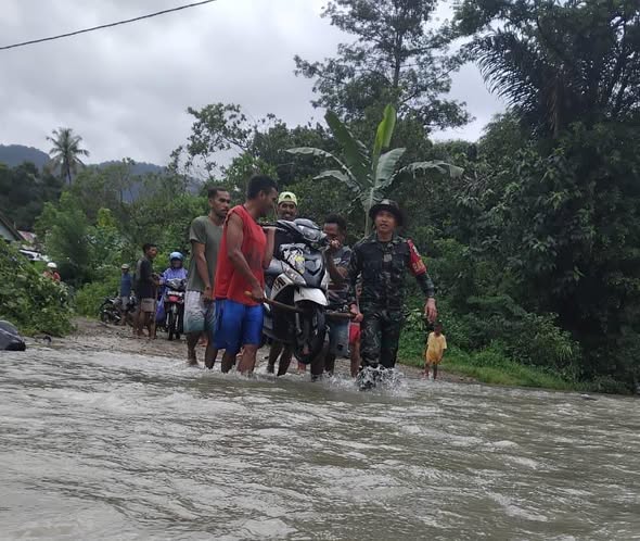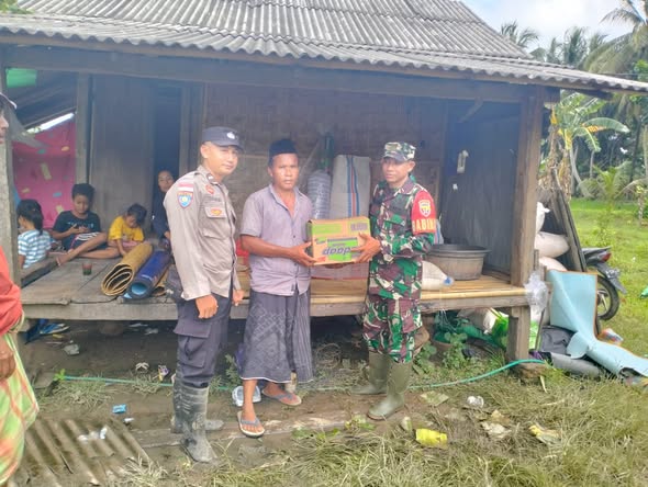 Danpos Ramil 04/Apui Bersama PMI Salurkan Bantuan Untuk Korban Banjir di Nurbenlelang