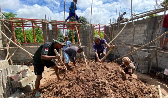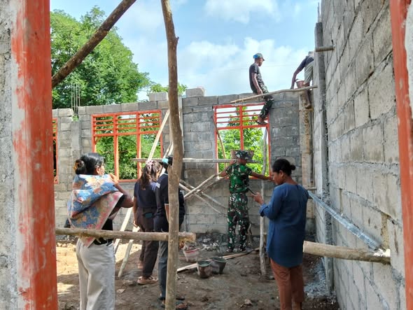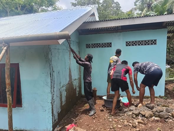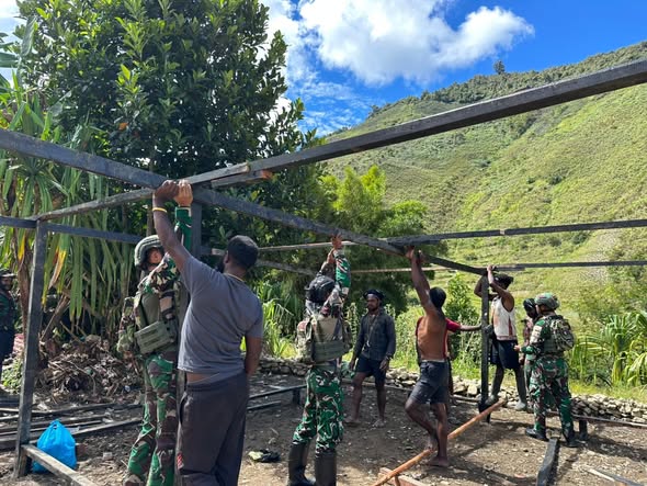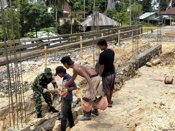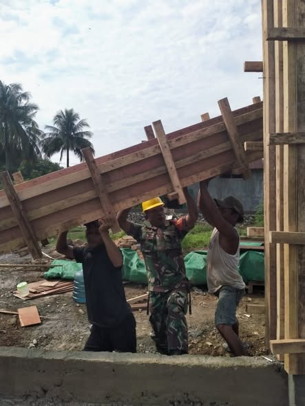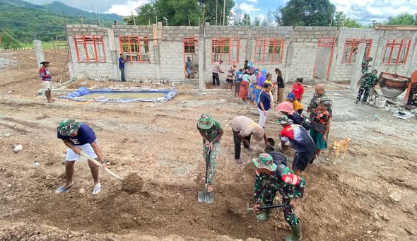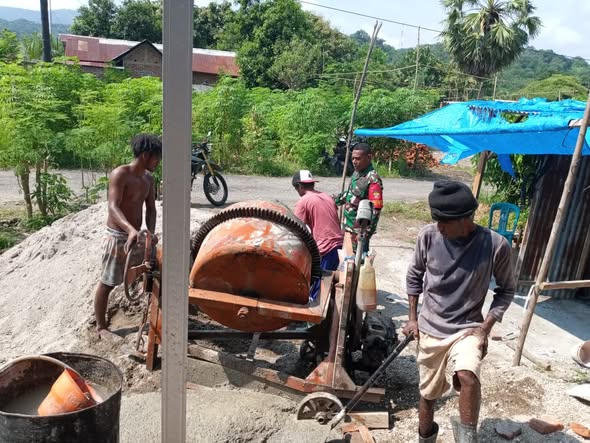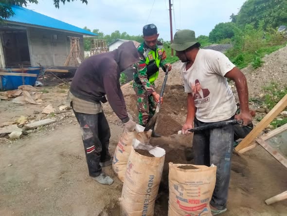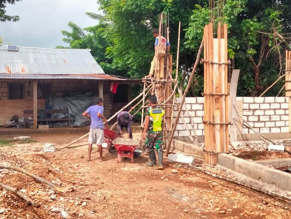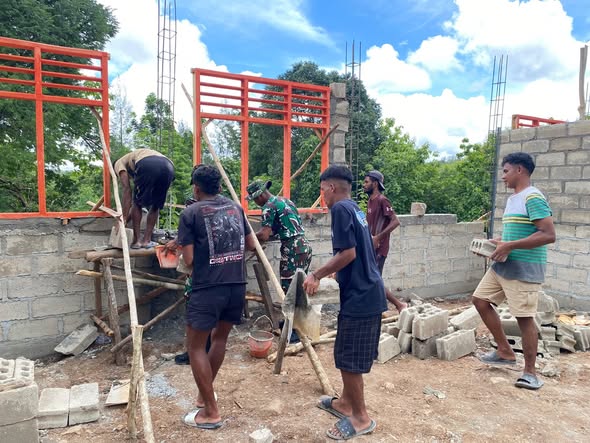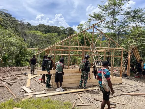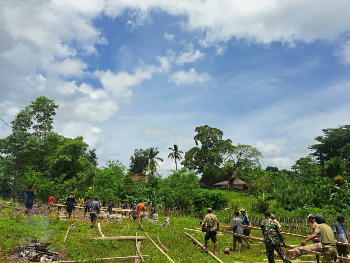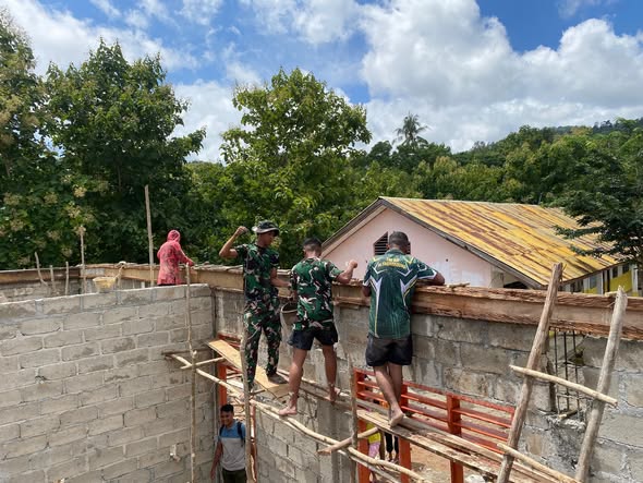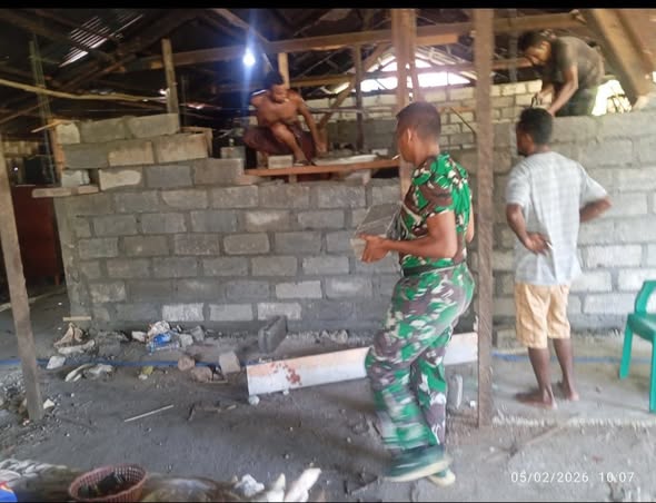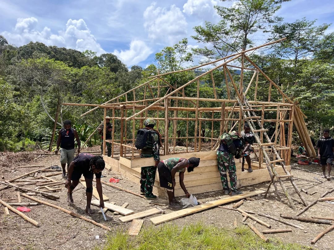 Bangun Rumah Milik Bapak Daniel, Wujud Keakraban Prajurit Satgas Dengan Masyarakat