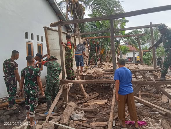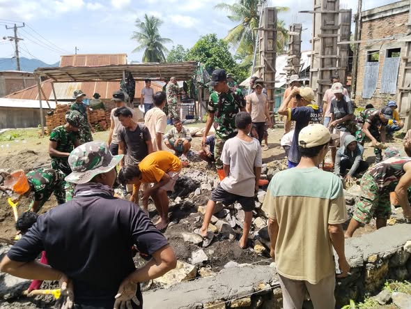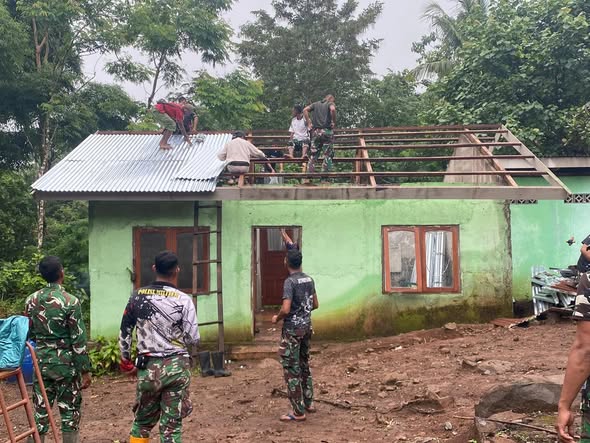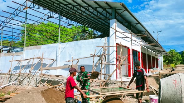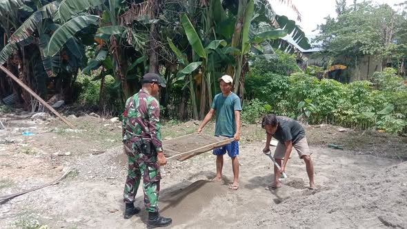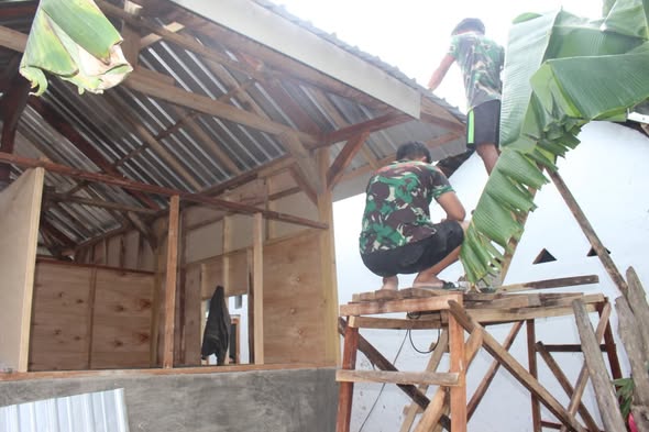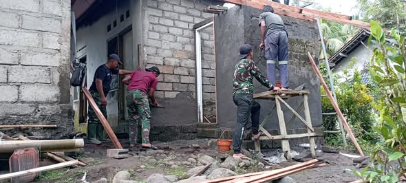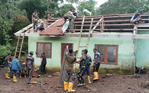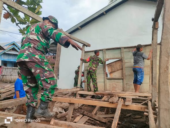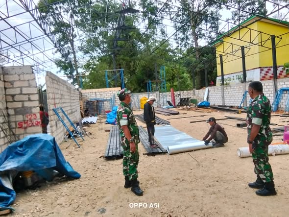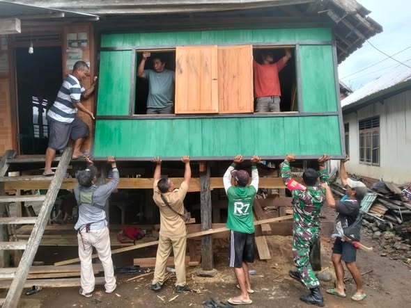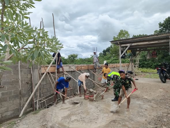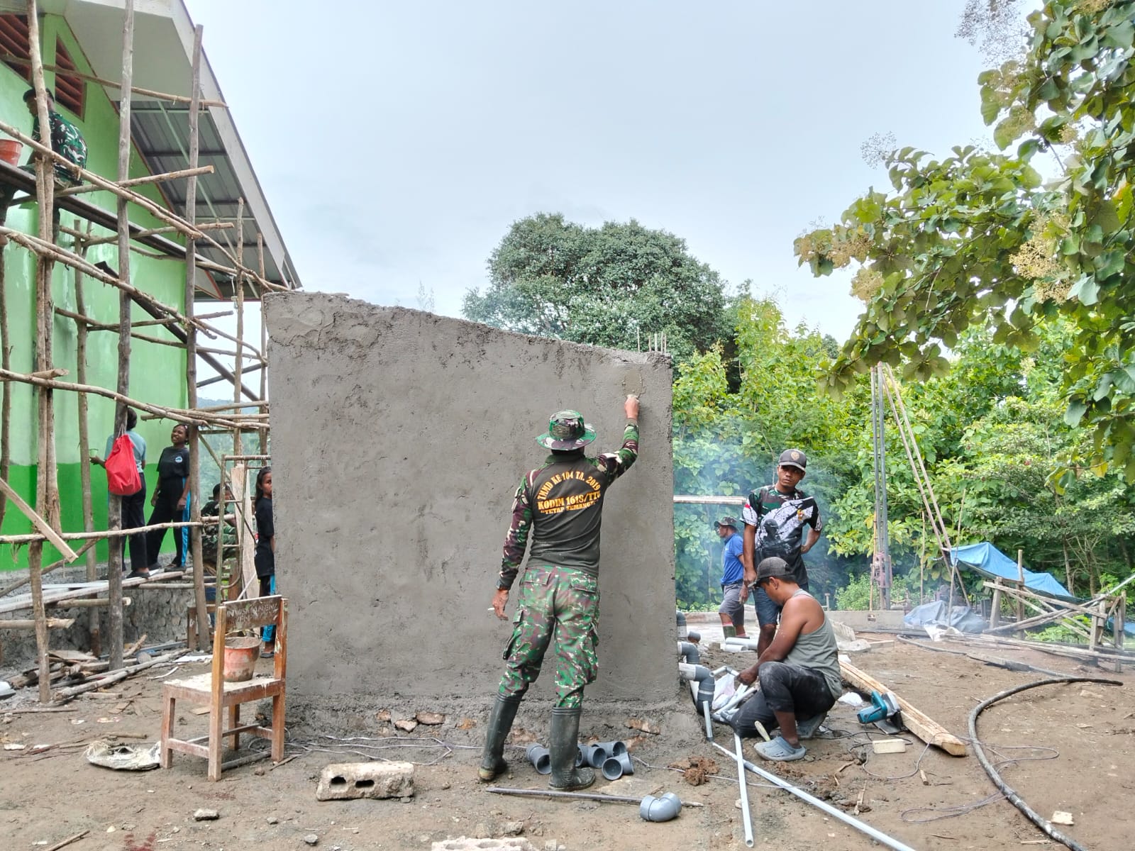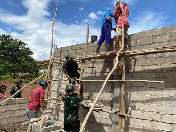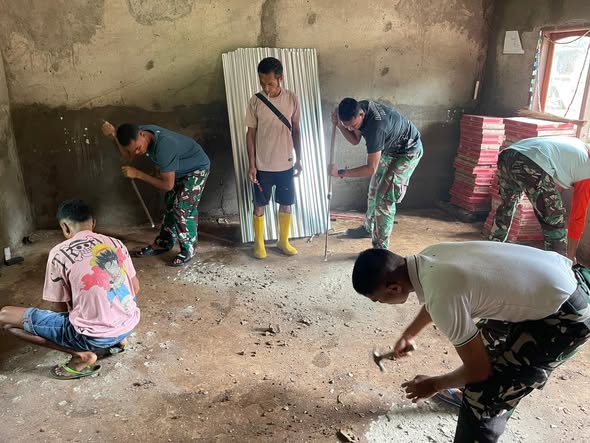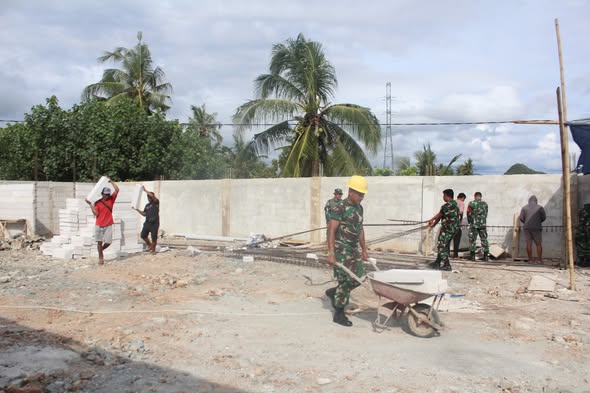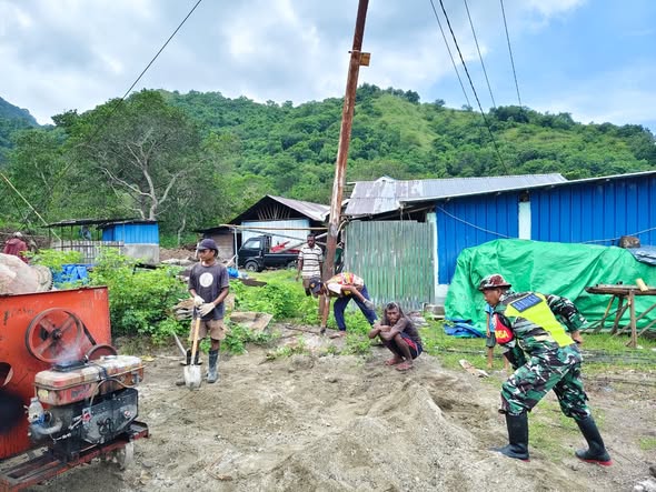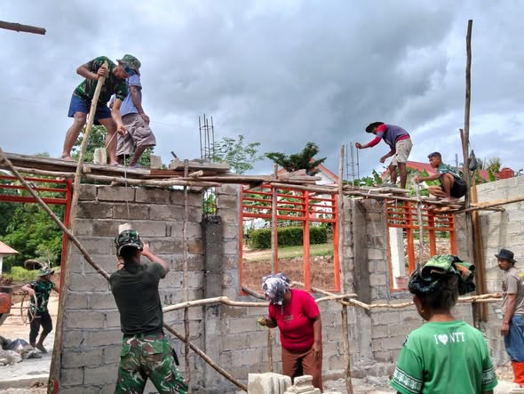 Bangun Rumah Milik Bapak Daniel, Wujud Keakraban Prajurit Satgas Dengan Masyarakat