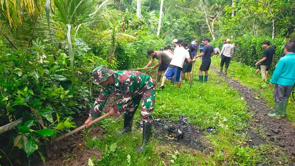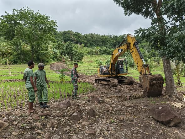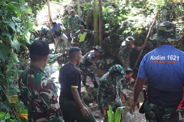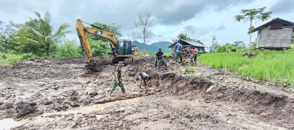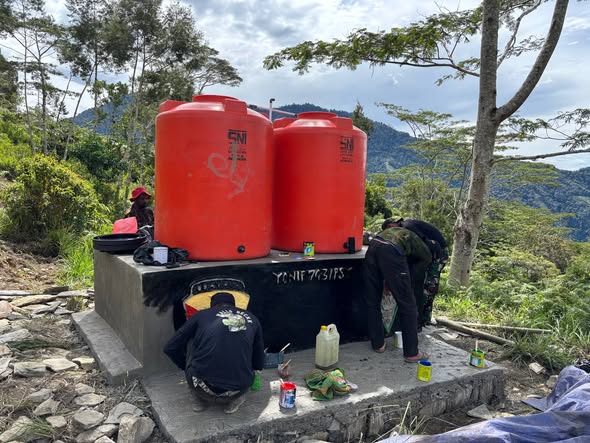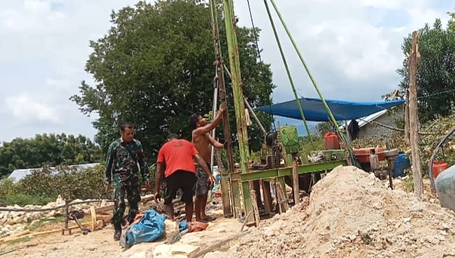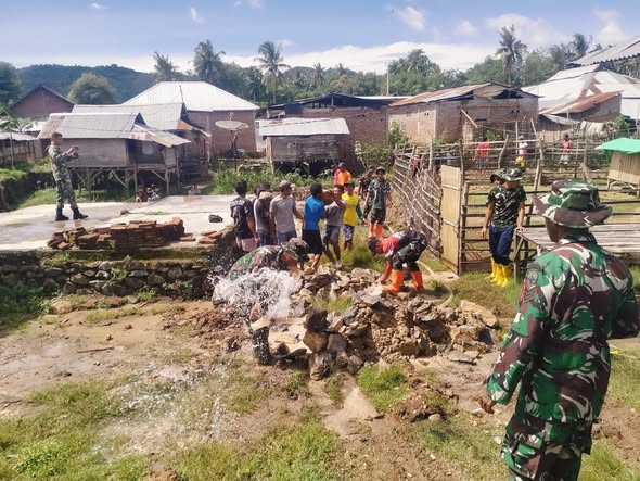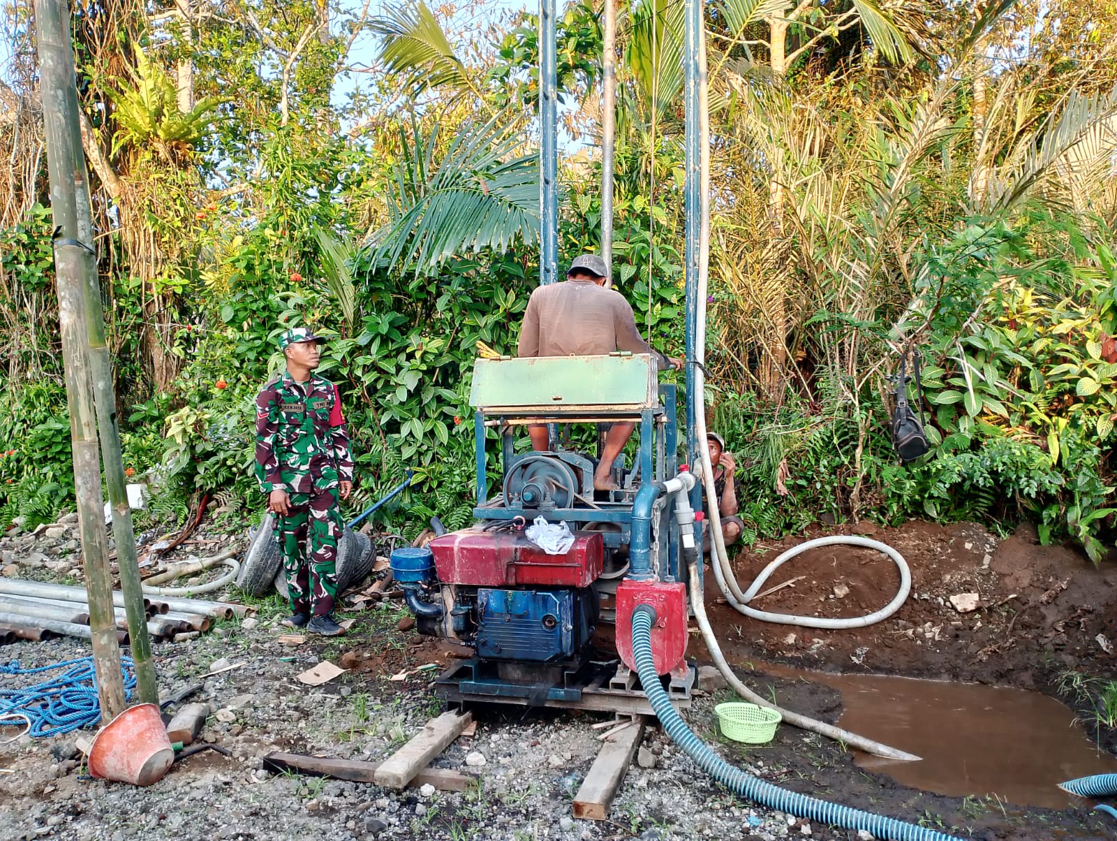 TNI dan Warga Kebut Pekerjaan Pompa Hidram di Desa Lekom