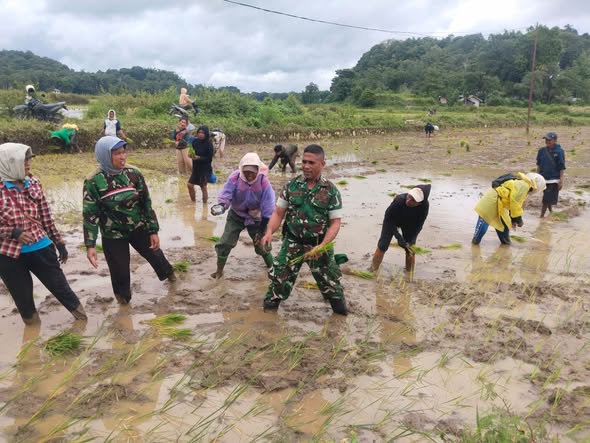 Dukung Ketahanan Pangan, Babinsa Sertu Domingos Araujo Bantu Petani