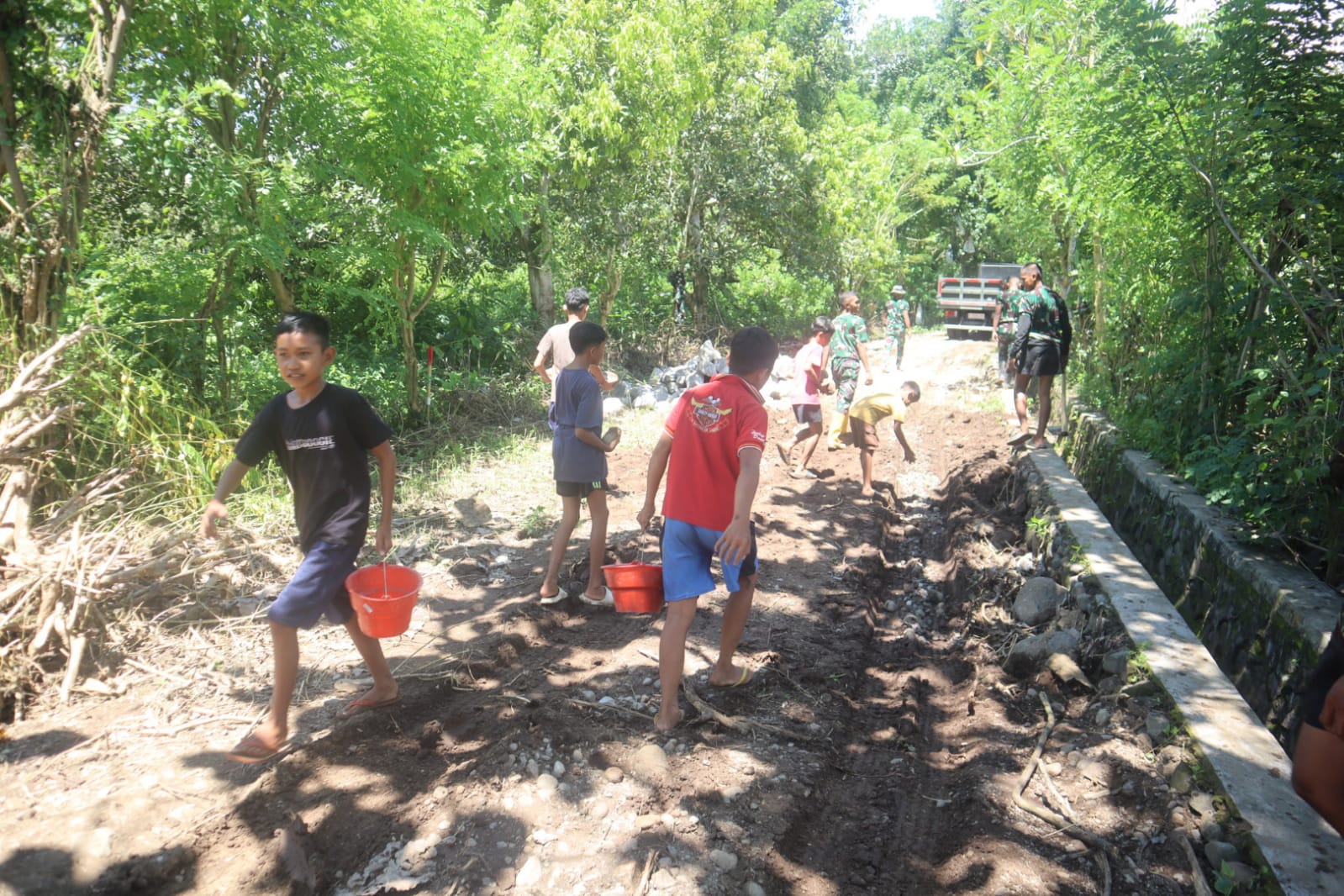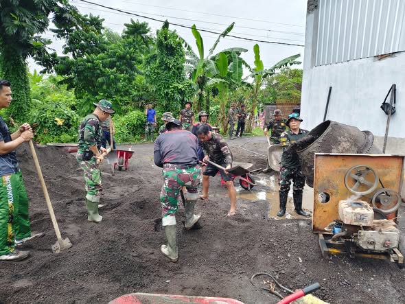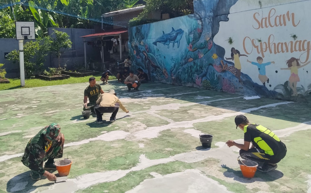 TNI Hadir untuk Rakyat, Personel Koramil Tabanan Benahi Lapangan Retak di Panti Asuhan Salam