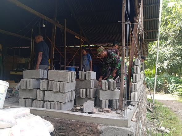 Bangun Kebersamaan, Babinsa Kalianyar Koramil 1615-06/Terara Gotong Royong Bangun Mushola