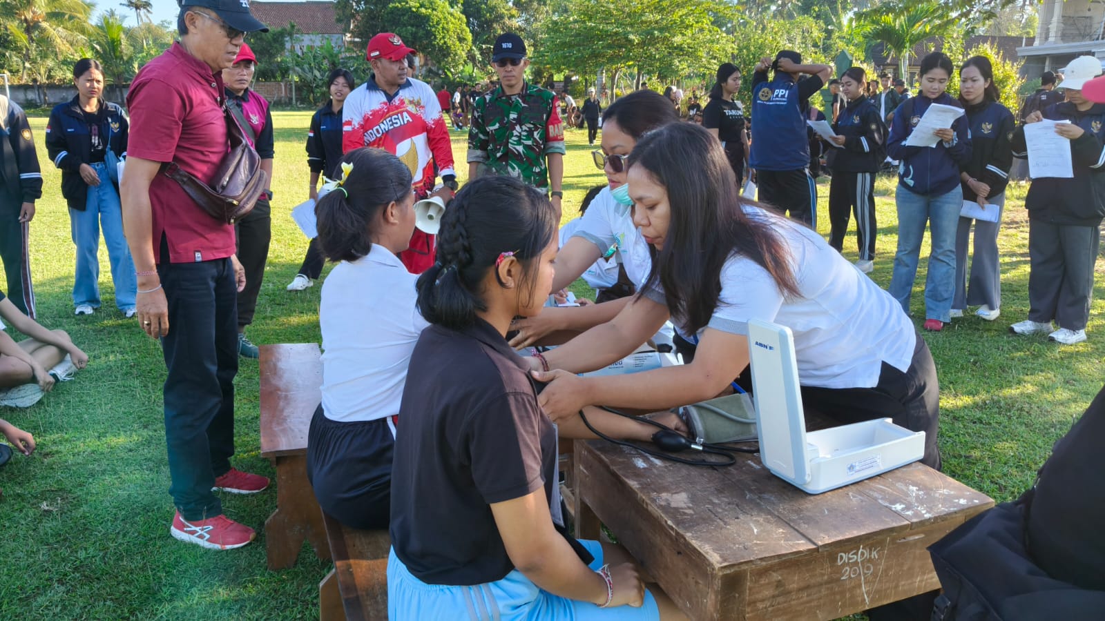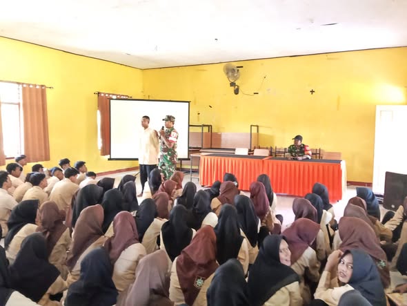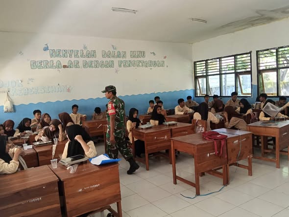 Babinsa Serda Muhajir Pantau Pelaksanaan Vaksinasi Bagi Siswa SMPN Dulolong