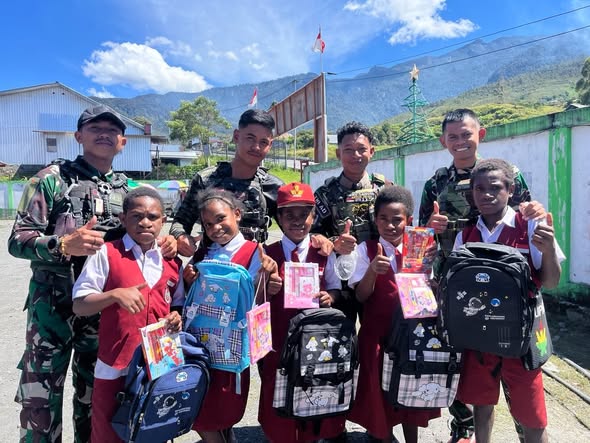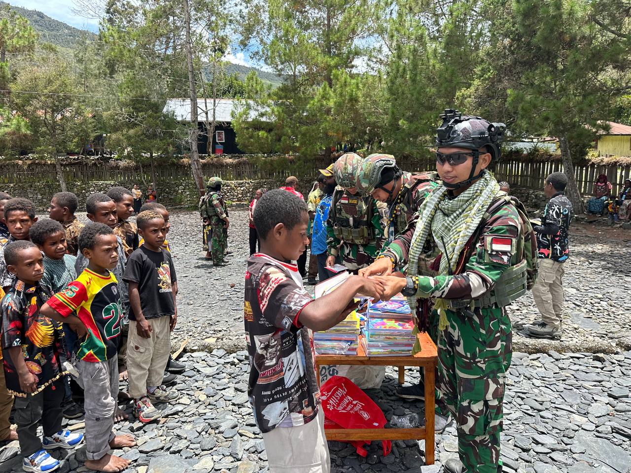 Tumbuhkan Semangat Belajar, Satgas Yonif 743/PSY Beri Bimbingan Belajar Anak-Anak di Perbatasan