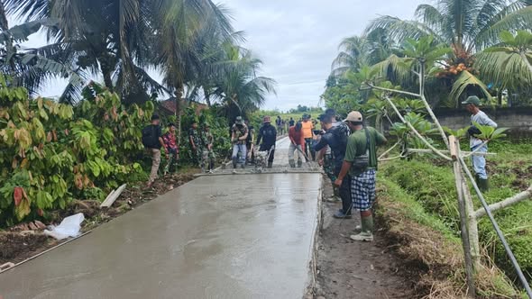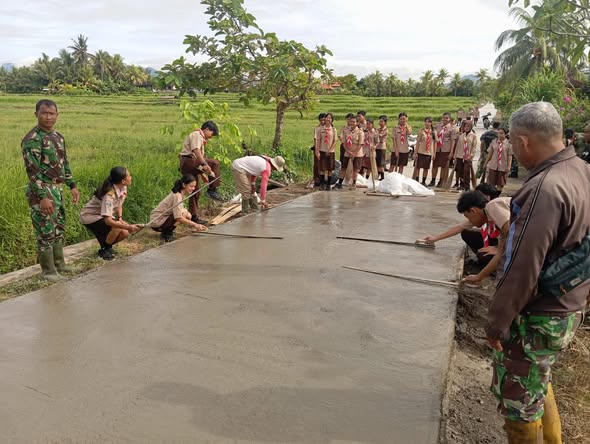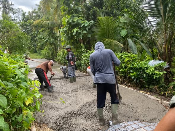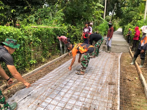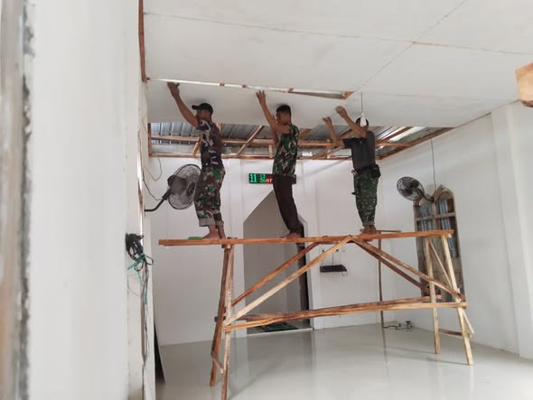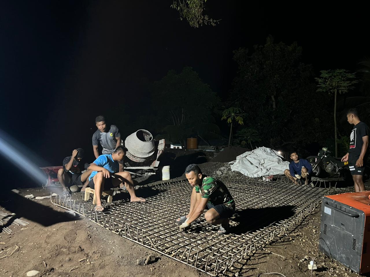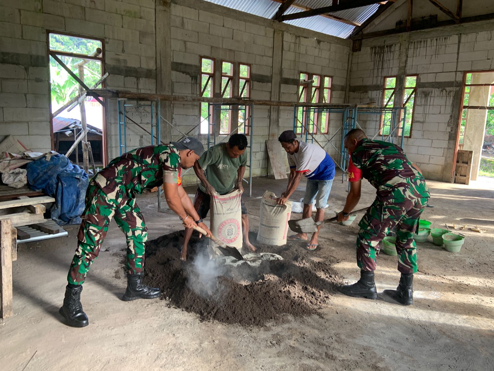 Kodim 1628/SB Bersama Masyarakat Desa Seminar Salit, Gotong Royong Mengecor Atap Masjid Al-Ikhsan