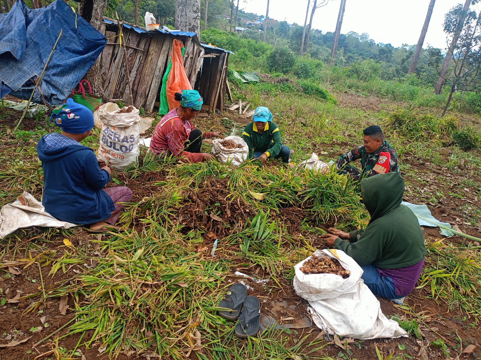 Babinsa Koramil 1630-03/Macang Pacar Perkuat Ketahanan Pangan Melalui Pendampingan Panen Jahe di Desa Coal