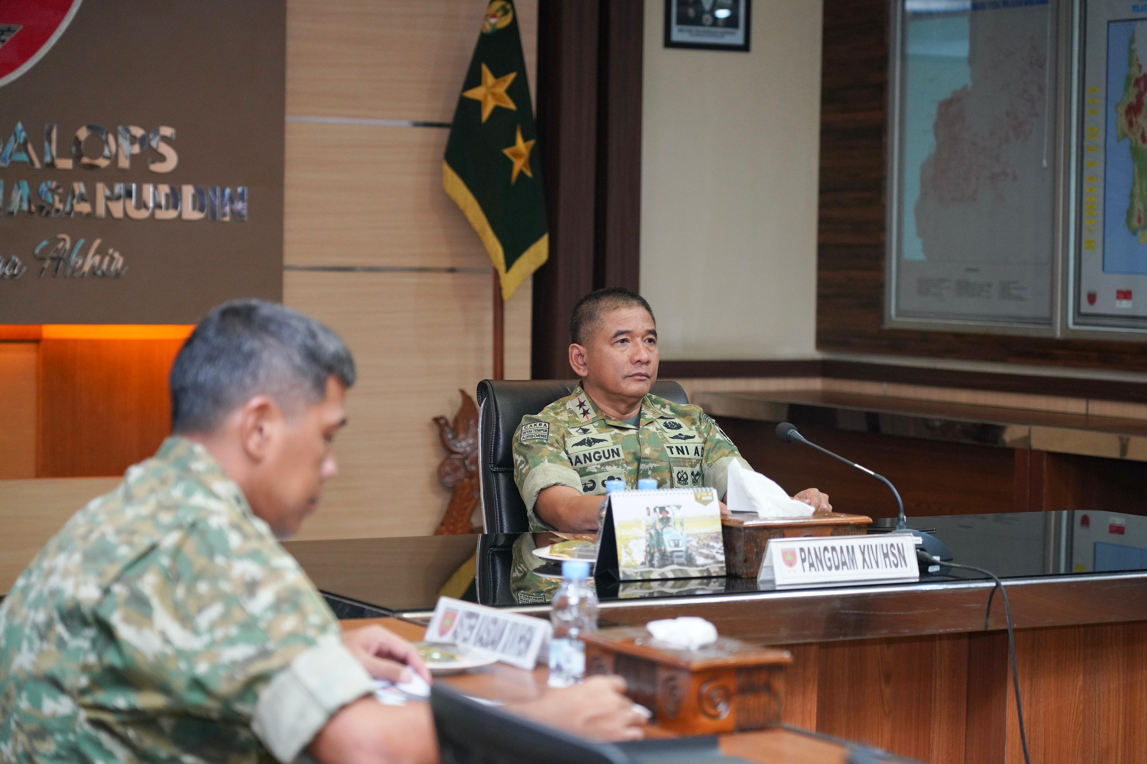 Makassar - Pangdam XIV/Hasanuddin Mayjen TNI Bangun Nawoko mengikuti Rapat Evaluasi Lanjutan Percepatan Pembangunan Koperasi Desa Kelurahan Merah Putih melalui Video Conference (Vicon), bertempat di Ruang Vicon Puskodalops Makodam, Jl. Urip Sumoharjo, Kota Makassar. Jumat, (27/3/2026).
