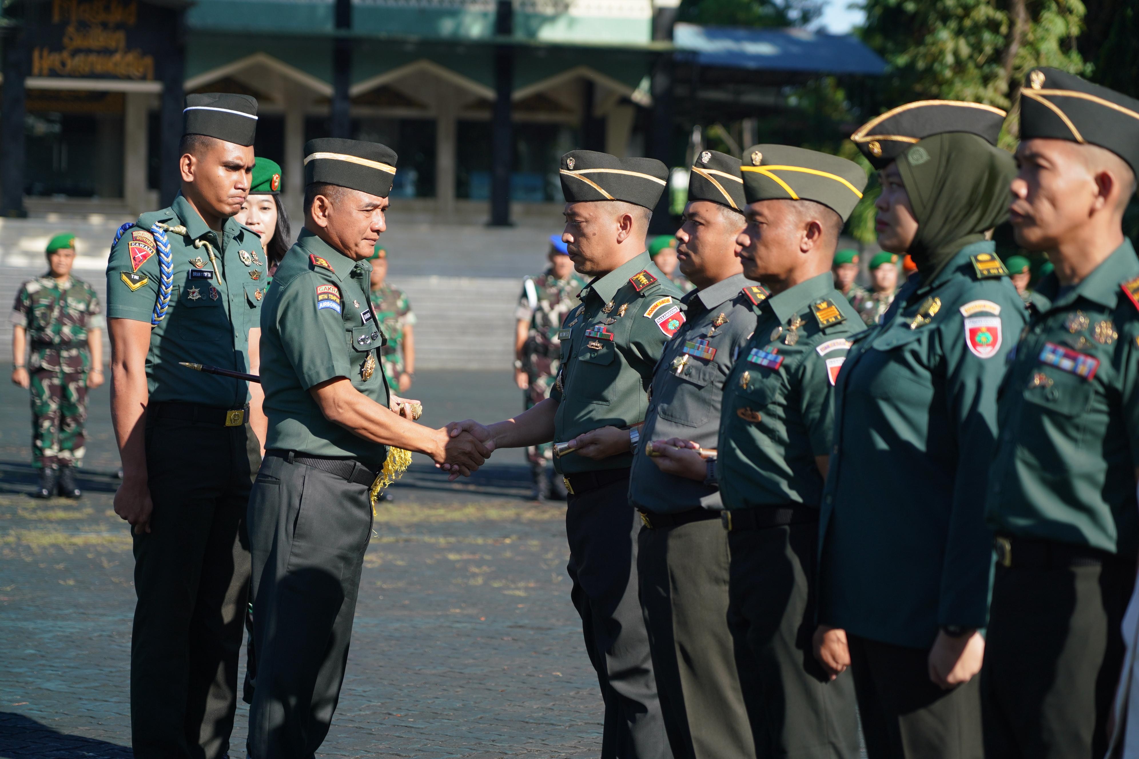 Dalam sambutannya, Pangdam menyampaikan apresiasi dan rasa bangga kepada para personel yang memperoleh kenaikan pangkat, seraya menegaskan bahwa kenaikan pangkat bukan sekadar penghargaan, melainkan bukti nyata atas dedikasi, loyalitas, dan pengabdian. Ia juga menekankan bahwa pencapaian tersebut tidak lepas dari disiplin, etos kerja, serta dukungan keluarga, khususnya peran istri yang setia mendampingi dalam setiap pelaksanaan tugas, sehingga keharmonisan keluarga menjadi salah satu kunci keberhasilan dalam pengabdian.