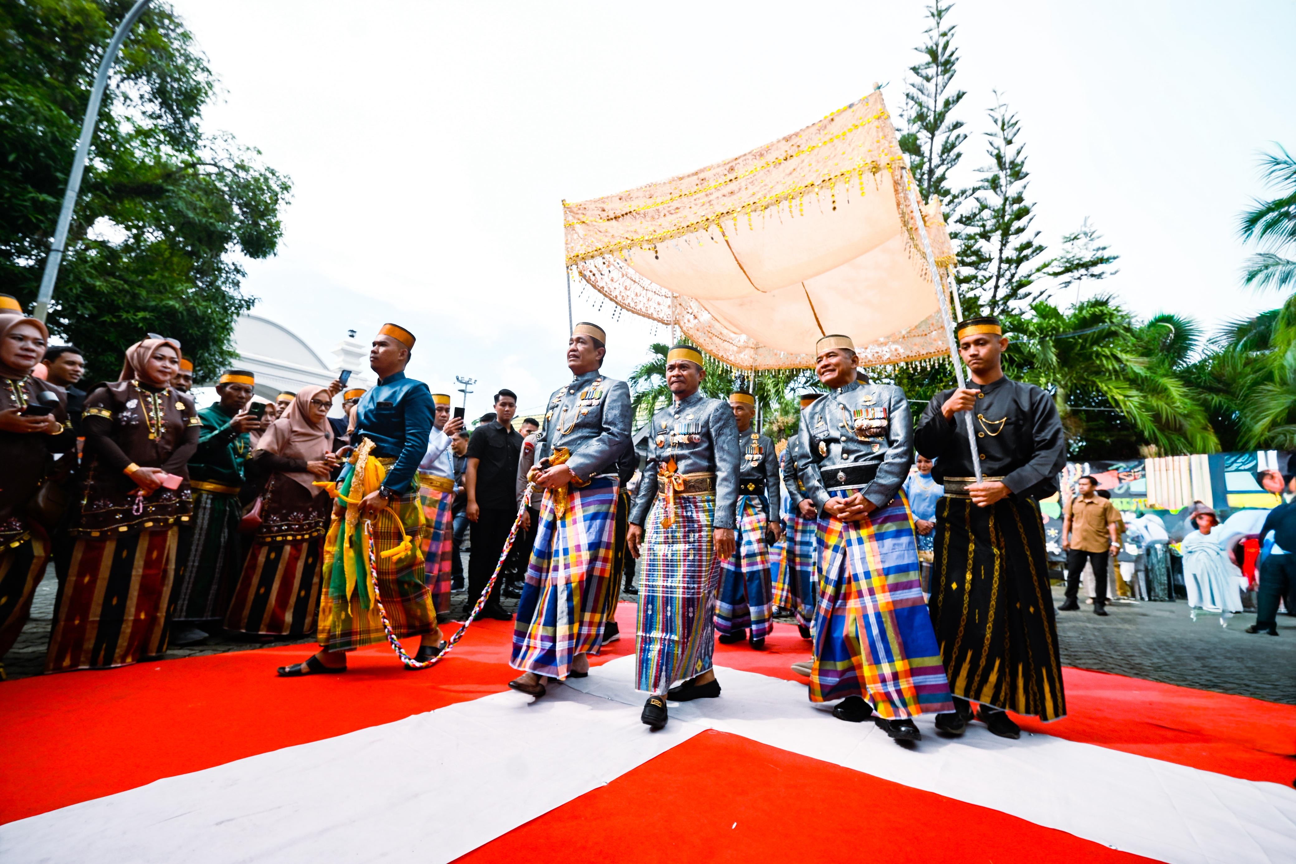 Bone – Pangdam XIV/Hasanuddin Mayjen TNI Bangun Nawoko, didampingi Ketua Persit Kartika Chandra Kirana (KCK) Daerah XIV/Hasanuddin, Ny. Renny Bangun Nawoko, menghadiri acara Mattompang Arajang puncak peringatan Hari Jadi Bone (HJB) ke-696 Tahun 2026. Kegiatan tersebut berlangsung khidmat di Rumah Jabatan (Rujab) Bupati Bone, Jl. Petta Ponggawae, Kelurahan Watampone, Kabupaten Bone. Senin (6/4/2026).
