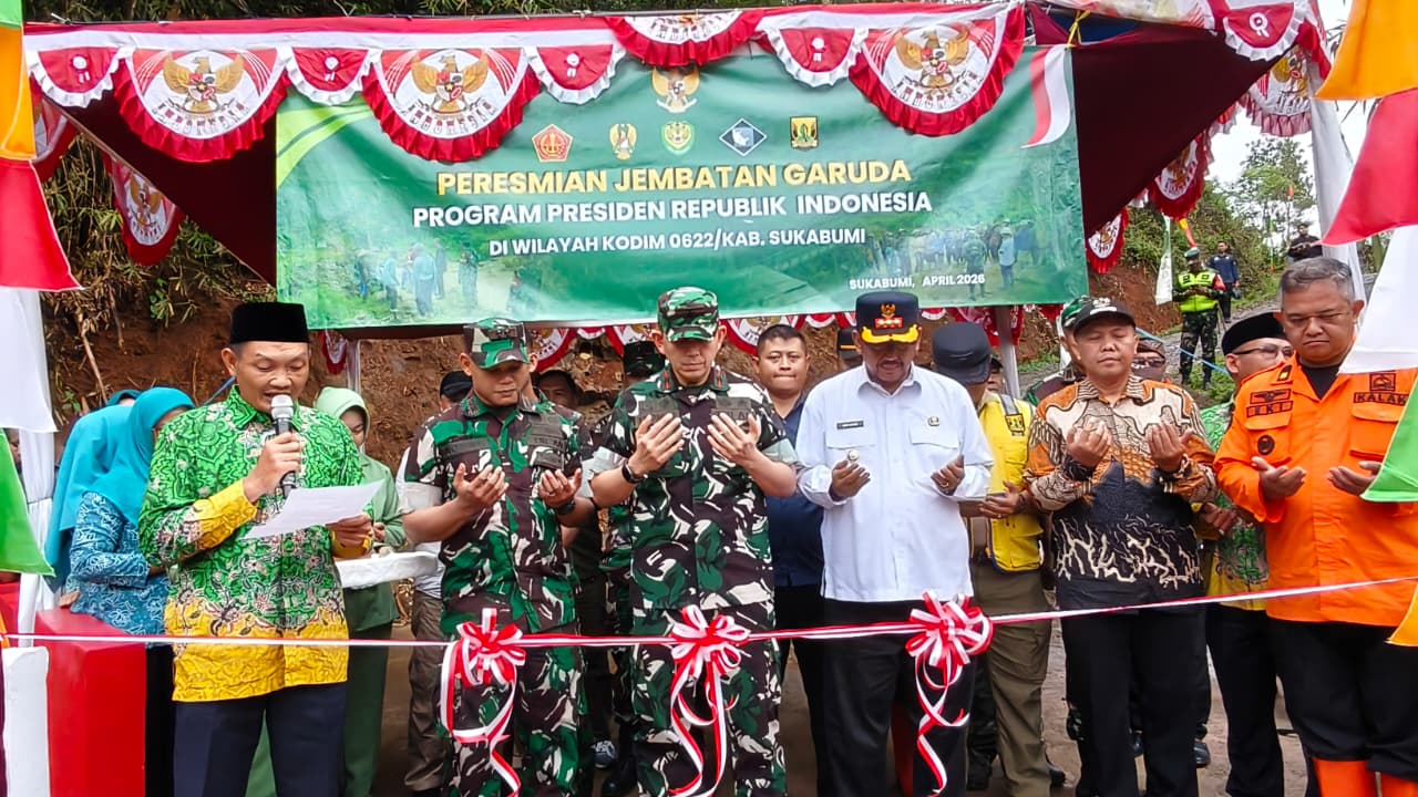 Sukabumi, β Komandan Korem 061/Suryakancana, Thomas Rajunio, menegaskan komitmen TNI dalam mendukung percepatan pembangunan di wilayah terpencil melalui peletakan batu pertama Jembatan Perintis Garuda di Desa Sukamaju, Kecamatan Cimanggu, Kabupaten Sukabumi, Kamis (9/4/2026).