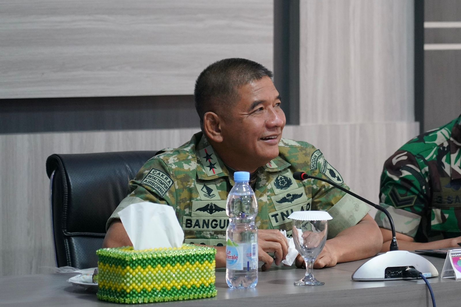Makassar – Pangdam XIV/Hasanuddin Mayjen TNI Bangun Nawoko mengikuti Rapat Pengelolaan Taman Makam Pahlawan Nasional Utama (TMPNU) Kalibata, TMP Seroja, Makam Pahlawan Nasional (MPN) Tuanku Tambusai, dan MPN seluruh Indonesia, yang dipimpin oleh Sekretaris Jenderal Kementerian Pertahanan RI, Letjen TNI Tri Budi Utomo, melalui Video Conference (Vicon), bertempat di Ruang Rapat Spersdam XIV/Hasanuddin, Jl. Urip Sumoharjo, Kota Makassar, Selasa (14/4/2026).