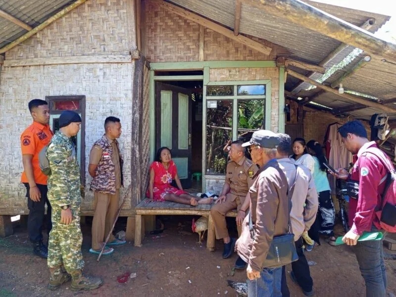 Lengkong, – Babinsa Koramil 2209/Lengkong, Serda Juanda selaku Babinsa Desa Tegallega, bersama unsur Muspika Kecamatan Lengkong, BPD, Tagana, dan P2BK melaksanakan kegiatan kunjungan sekaligus peninjauan terhadap warga yang mengalami permasalahan sosial.