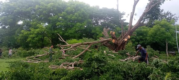 Antisipasi Angin Kencang Babinsa Bersama Warga Tebang Pohon