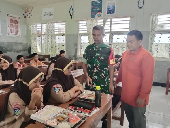Babinsa Koramil 01/Rasanae Dampingi Pembagian Makan Bergizi Gratis 2.192 Pelajar Kelurahan Tanjung