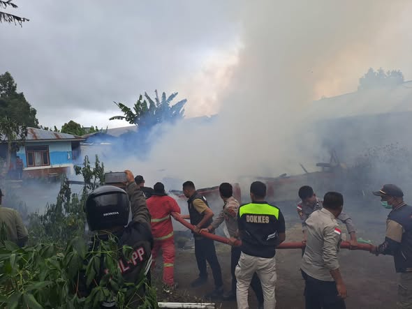 Babinsa Koramil 1612-01/Ruteng Sigap Bantu Warga Padamkan Kebakaran di Kelurahan Pau